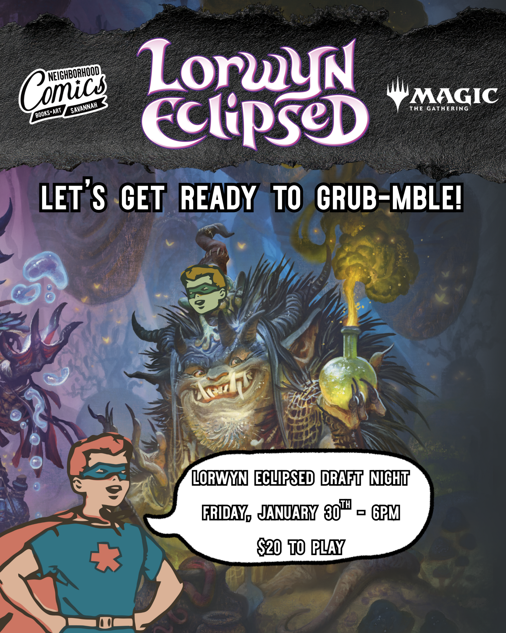 Neighborhood Comics 1205 Bull St., Savannah, GA, United StatesGet ready to explore Lorwyn Eclipsed through BOOSTER DRAFT! Players each have 3 booster packs. Players open one booster pack and choose one card from the pack and then pass […]